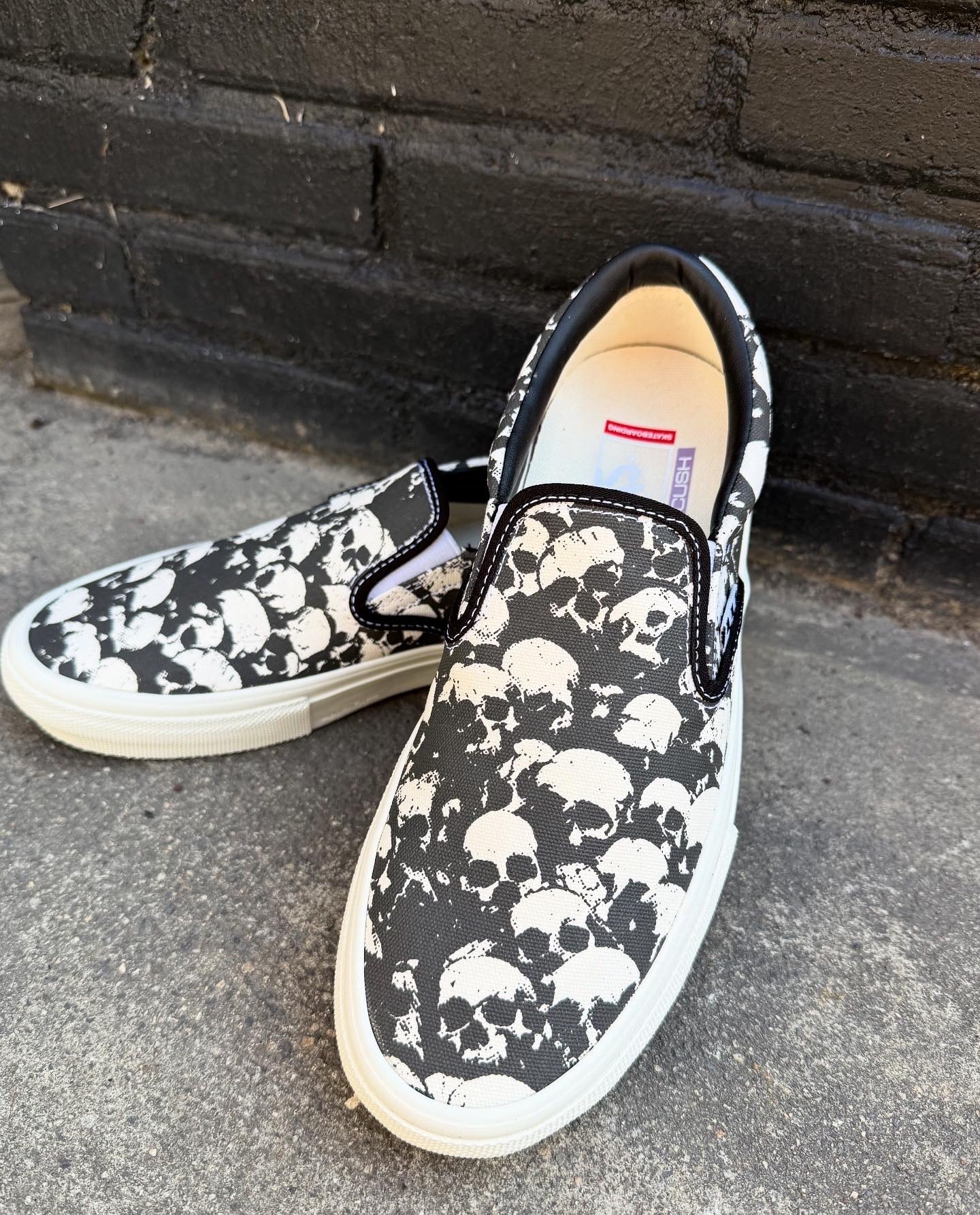 VANS / SKATE SLIP ON / skull pile black/white